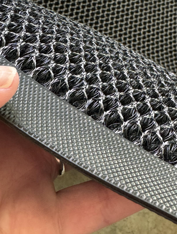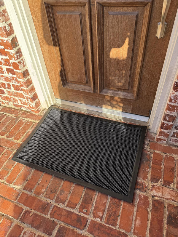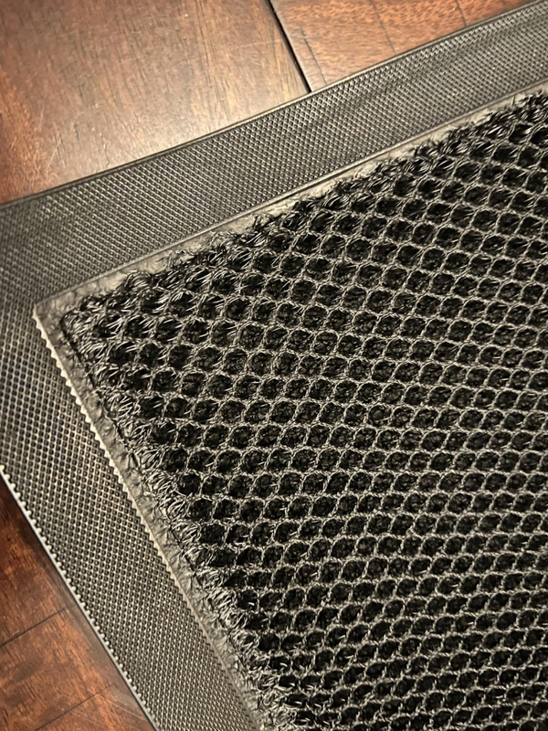 Honeycomb mesh traps dirt. Rubber base stays put. No curling edges guaranteed.