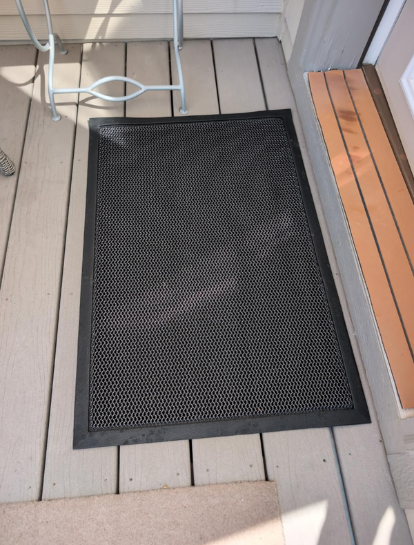 Sandeep B. | dec 2025Verified BuyerExcellent For Sandy AreaWe get lot of sand blown around in Jaipur. Regular mats just spread sand everywhere when you step on them. This mesh mat is different - sand falls through and stays trapped. Very clever design. The rubber base is thick and grips tile floor perfectly. I have two kids who run in and out constantly, this mat handles all that traffic without any problem. No wear and tear visible yet. Quality is very good for the price. Recommended!