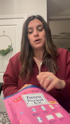 The kit is designed for tweens (ages 9–15) who are starting their first period journey.